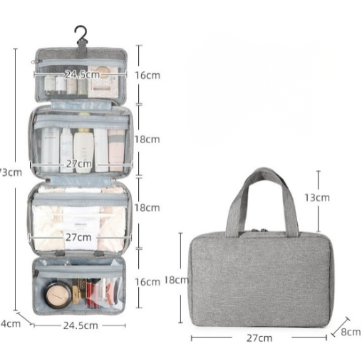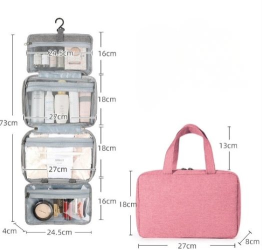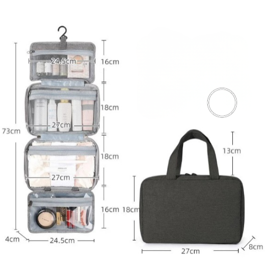 Tämä kätevä matkajärjestäjä maksimoi tilan ja auttaa sinua pysymään tehokkaana, varmistaen, että kaikki, kosmetiikasta hoitotyökaluihin, on käden ulottuvilla. Sen monipuolinen muotoilu tekee siitä välttämättömän niille, jotka etsivät sekä järjestystä että käytännöllisyyttä matkoillaan.