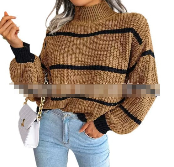 Ellen | Elegant genser med høy hals og stripemønster for kvinner